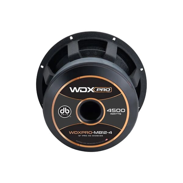 The WDXPRO-MB12-4 is a 12-inch midbass speaker engineered for extreme high-output car audio systems. It features a 4.0″ high-temperature voice coil with a shorting ring, paired with a ferrite oxide magnet for superior power handling. The treated paper cone and cloth surround are optimized to deliver precise midbass frequency response and exceptional output performance. With a dynamic power handling of 4500 watts and a nominal power rating of 3000 watts, this speaker is built for unmatched performance and durability.