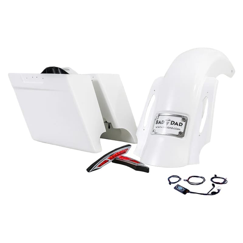 This awesome kit features Bad Dad’s new Summit Series Kit as a complete bolt-on package for your 2023.5 CVO and 2024+ Touring bike. Save money and get free shipping when buying this complete kit as one package. All of these parts are pre-drilled, pre-fit, and designed to bolt-on, snap-in & plug-in for your new project.